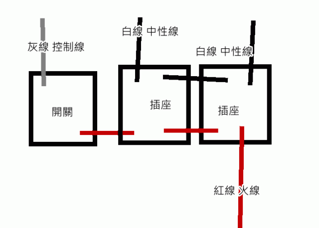 開關關掉。黑膠帶拆開來,跟開關上的紅線或是灰線量看看是不是有量到110V。如果是,恭喜您不用另外拉線。開關換成插座,接上去就成了。原本舊開關其中有一條線(量不出電壓的那條)廢掉不用。
