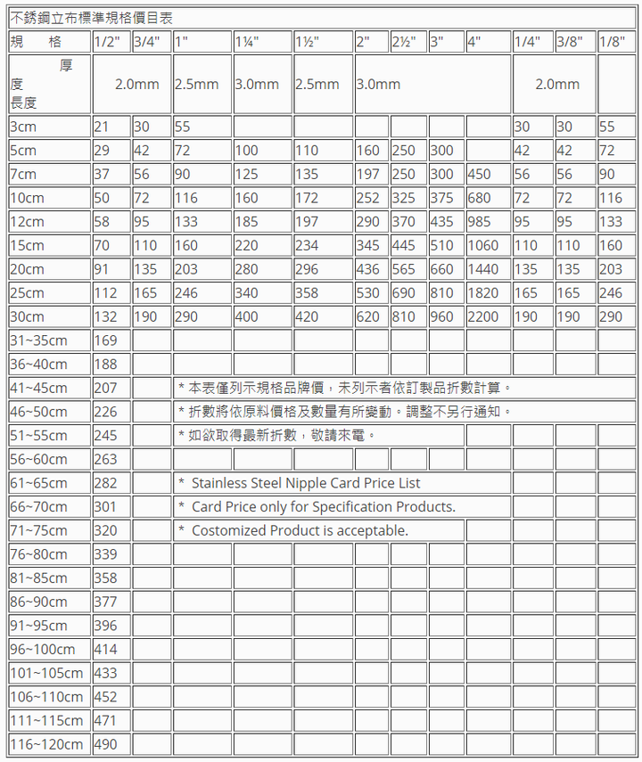 不銹鋼鋼管現在在水電材料行從3公分起都事先車好備料著,等著賣,你知道那個3cm~120cm叫做立布嗎?