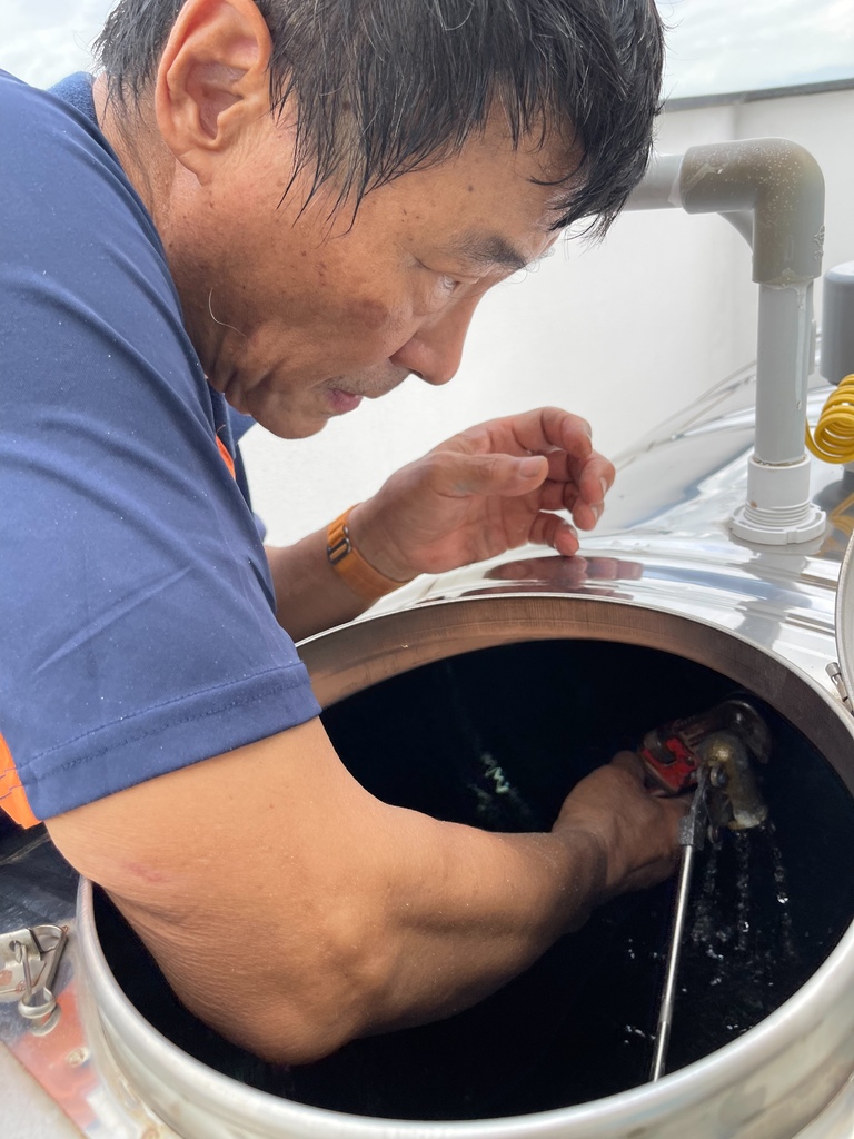 ▼水電師傅說水塔開關生鏽應該有年頭了,運作上會不靈動是正常的,於是幫我們汰換新的進水開關,並測試進水沒問題。