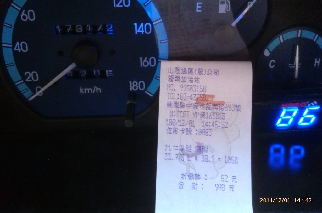 今日92加滿油 另算1.6元降價 加了25.874L 共762元 +20洗車