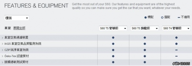 昨天到 Volvo Taiwan 官網查看 S60 T5 & T4 的配備, 發現 T4 沒有