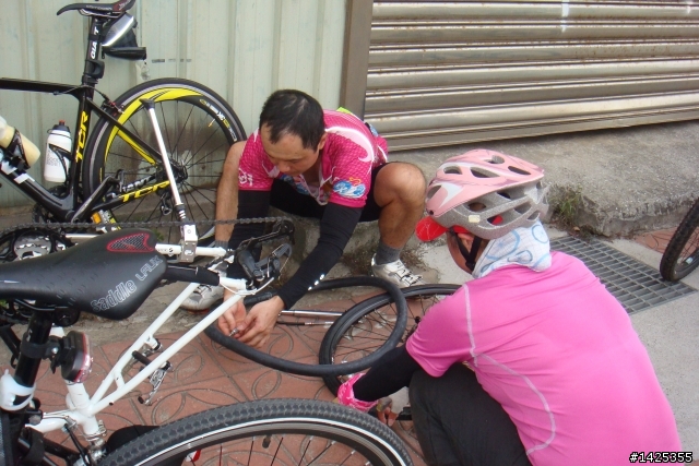 8/22與朋友約騎到永安漁港,到距離永安約10K處,朋友的車爆胎,朋友騎的是公路車,又沒帶內胎,正在傷腦筋要準備找人救援時,看到林北車隊的車友停下來,阿豪二話不說,拿出工具,熟練的幫忙補胎,甚至還一邊的作一邊現場教學,阿豪的熱心,真是太令人感動了,也解決我們的問題,再次的感謝阿豪的熱心幫忙,也祝林北車隊9/26花蓮200K全體都完賽。