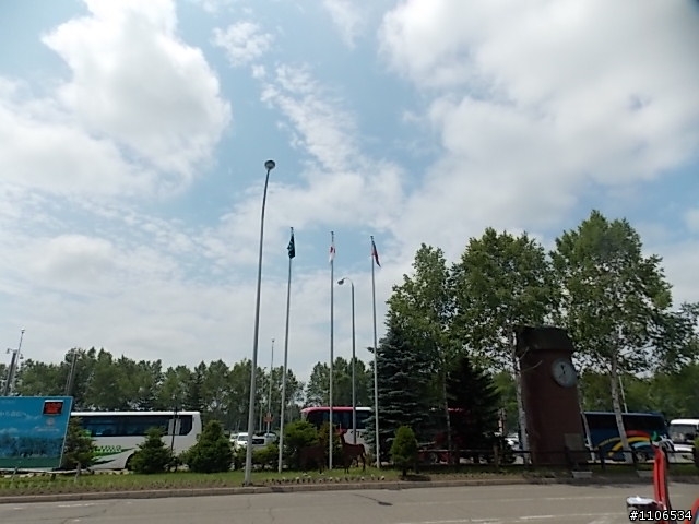 領了行李 當地觀光局又給了我一些知名的餅乾也安排了 原住名 蝦夷族 的傳統歌舞表演出了大廳戶外旗桿中華民國的國旗 升起 表示 經濟可以超越政治看到麵包超人 又在耍無辜 賺錢了~清新的冷風 提醒著抵達了 北海道 最大 最豐富的 糧倉帶廣 十勝大平原~