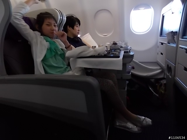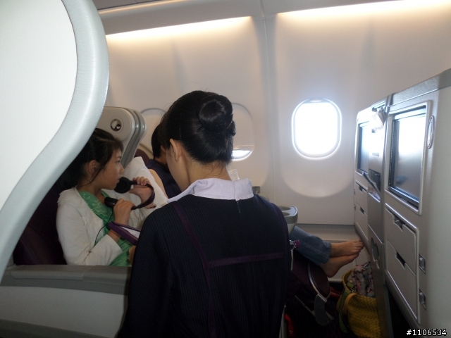 美麗的空姐 來做高跪姿的服務光看優美的頸部就是 後面萬人迷 前面迷萬人吃吃喝喝 各尋其樂巡航悠遊 盤旋其上雲淡風輕 迴旋而下土地輪廓 隨光浮現放下機輪 平安降落跟好幾年前 此地首航我坐包機前來 一樣新鮮牛奶供應青天白日滿地紅的國旗高掛~