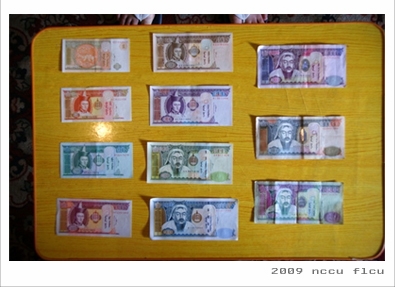 目前在蒙古使用的幣值最小到1蒙圖,最大到20000蒙古,全部都是紙鈔。