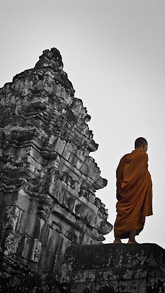 003.和尚穿著橘紅色的袈裟,與吳哥建築真是絕配啊