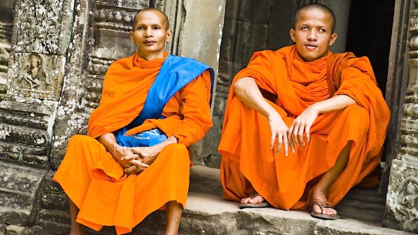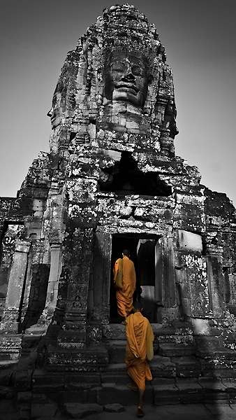 006.在吳哥窟內,身著橘黃色的和尚總是人們注目的焦點