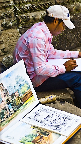 009.當地的畫家,正以鋼筆描繪出他心中的微笑吳哥