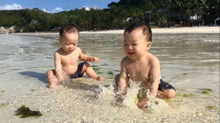 但帶著孩子也無法按摩,小孩敢玩水但無法克服將頭埋進水裡,所以也無法浮潛