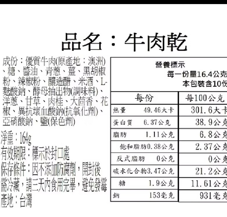 請問有沒有不含甜味劑和防腐劑的牛肉乾? 有得買嗎?