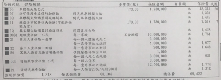 在簽約前,有先試算過以173w的車價投保乙式保險,網路上試算是約5.5w,