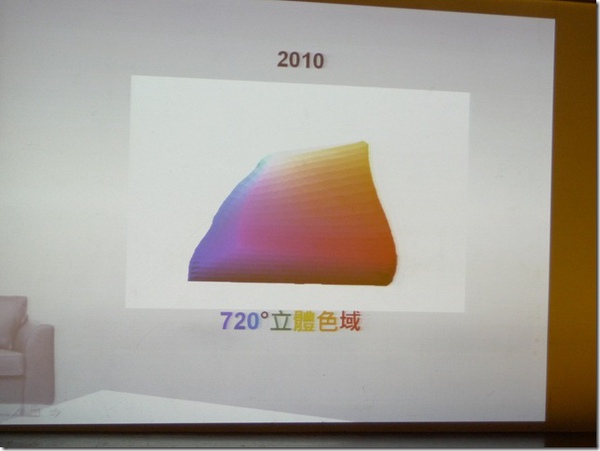 奇美從2008年開始,每年都有主打的主題,從2008的廣色域、2009的廣色域再進化,到今年與工研院合作研發的720度立體色域,可以看到奇美對於影像色彩技術不斷求進步的堅持!