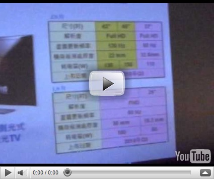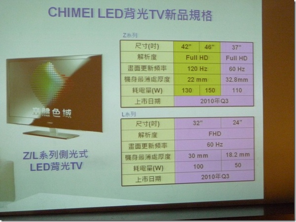 雖然今天主角是Z系列,不過在這張投影片中,還有列出L系列的規格介紹(預計2010Q3上市販售)。而Z系列部份,除了我們今天體驗的42吋機種,46吋及規格稍低的37吋機種,目前是還沒有開始進行販售的。
