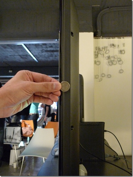 接著看看Z系列LED多媒體液晶顯示器側面,由於是使用LED背光系統,因此厚度相當的薄,約是2個5元硬幣併排的長度而已。