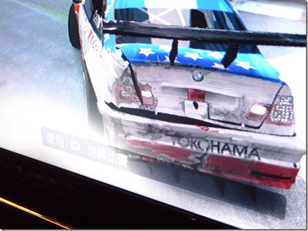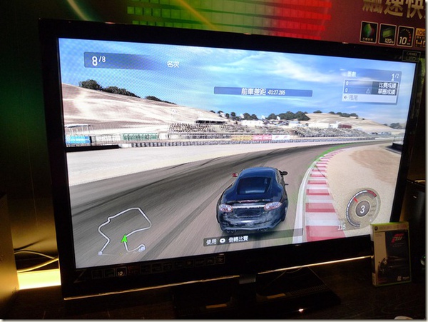 坐回座位,用錄影的方式,來錄一下最靠近我位置這台Z系列LED多媒體液晶顯示器,極限競速3的DEMO畫面。