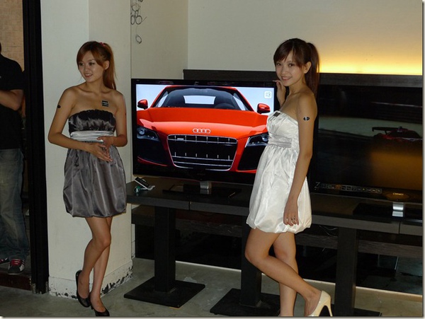擺在另一個角落的兩台42吋Z系列LED多媒體液晶顯示器。當我還在欣賞這兩台顯示器正面造型時,另一位來參加活動的網友,已經在觀察Z系列LED多媒體液晶顯示器的背後造型了!