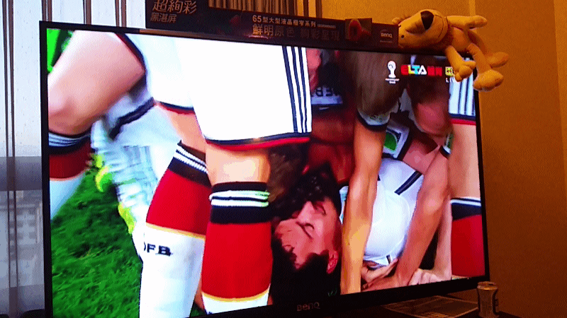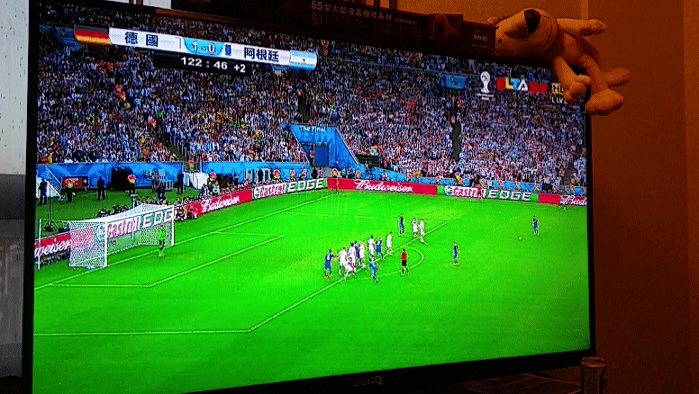 這進球的畫面,不是我事後拍的,而是進球當時,我跟一群朋友在BENQ的呼朋引「爸」球賽轟趴揪團活動中,直接對著BENQ超絢彩黑湛屏65RW6600大尺寸LED液晶電視所拍的。