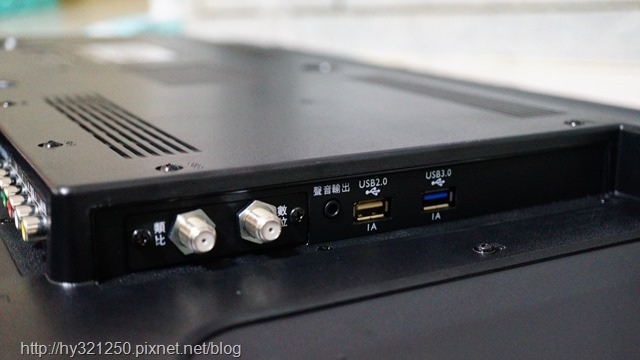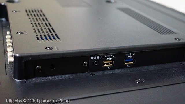 側邊的輸出/輸入連接埠,包括聲音輸出插孔、以及提供1A電壓輸出,支援H.265/H.264的USB 2.0與 USB 3.0連接埠各一個。