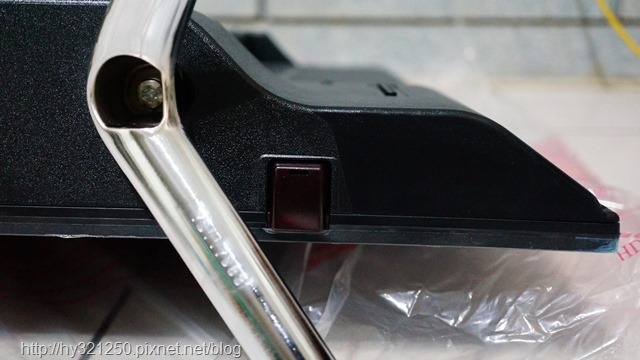 遙控器的紅外線接收器,位在底部的右邊。另外,BenQ 50IZ7500使用的V型腳架,只要使用一顆螺絲鎖定即可。