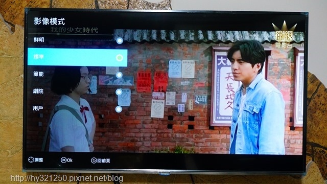 影像模式共有五種項目可以選擇,初始設定為標準。接著,看看其它四種選項的螢幕顯示狀況。