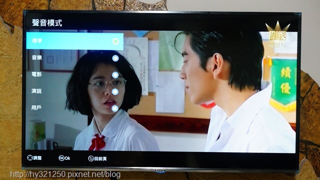 影像模式部分,有標準、音樂、電影、演說與用戶共五種項目可以選擇。