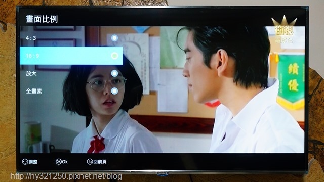 畫面比例部分,有4:3、16:9、放大與全畫素共四種項目可以選擇。