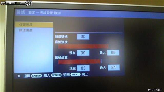 看到這消息,立刻衝去買天線!花了一個下午組裝和定位後。掃描頻道就找到了!家中的高階液晶電視終於有用武之地啦天線:大通的UA-24,訊號指向為台南嘉義交界的枕頭山發射站地點:彰化縣員林鎮中山路,僑信國小和地方法院附近透天機上盒:SONY 55X4500內建機上盒訊號品質:100%(強度看不出來,內建顯示盒只有顯示訊號品質)哀哀~雖然畫質OK!不過我還是不看偶像劇的呢這張照片就厲害了,拍起來好像在看一扇窗戶,有SAMSUNG的 Ultra Clear Panel的感覺字體好清晰啊