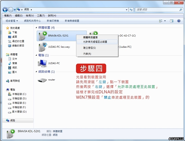 windows 7的桌上型電腦搜尋不到具有DLNA功能之電視