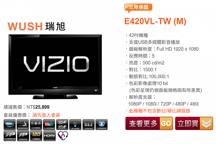 請問Bandott便當盒子對電視有什麼硬體需求嗎?Bandott接上我2011年購入的Vizio(瑞軒)E420VL-TW電視機,竟然無法輸出畫面(沒畫面),就算把便當的解析度改成1080i或更換hdmi線,電視端一樣都沒畫面。 (PS. 改接電腦螢幕Dell U2414H能正常運行)Vizio E420VL-TW的硬體規格如下:.42吋機種.支援USB多媒體影音播放.面板解析度:Full HD 1920 x 1080.反應時間:5.亮度:500 cd/m2.對比:1500:1.動態對比:100,000:1.色彩影像處理10 bit (色彩呈現仍視面板規格而有所差異).解析度支援:1080P / 1080i / 720P / 480P / 480i