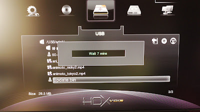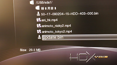 介紹一下更新HDX1080韌體的方法!蠻簡單的說首先將韌體放到隨身碟內!點選USB後就會看到檔案目錄,找update.bin點擊後,要稍微等一下,然後就會出線更新時間更新時右上角會出線字樣,更新完後會自動重開機這期間請勿操作HDX