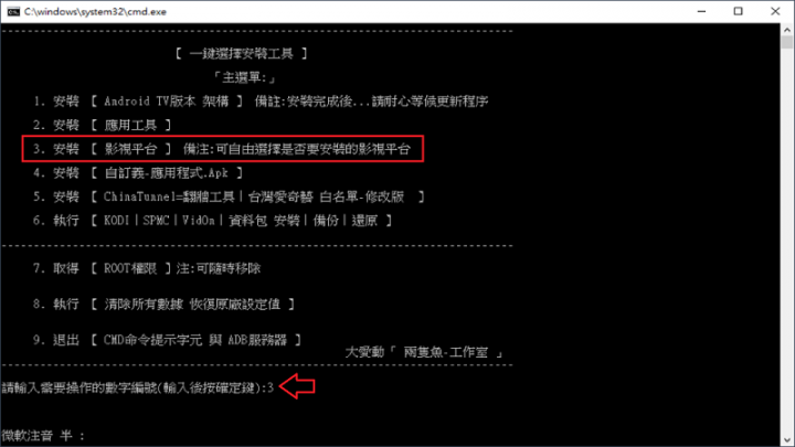 選項:3. 安裝 【 影視平台 】 示範圖示: