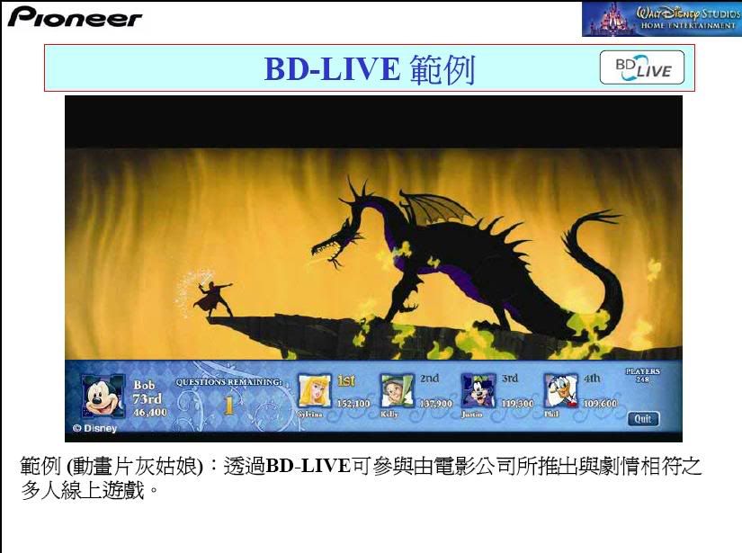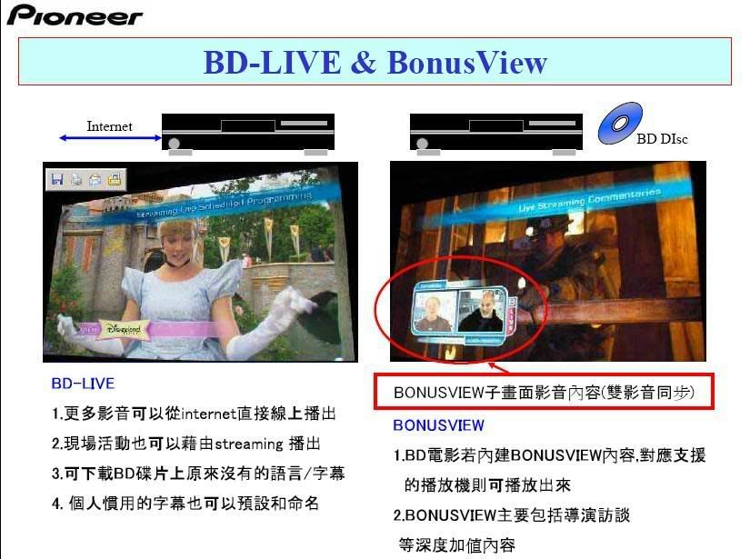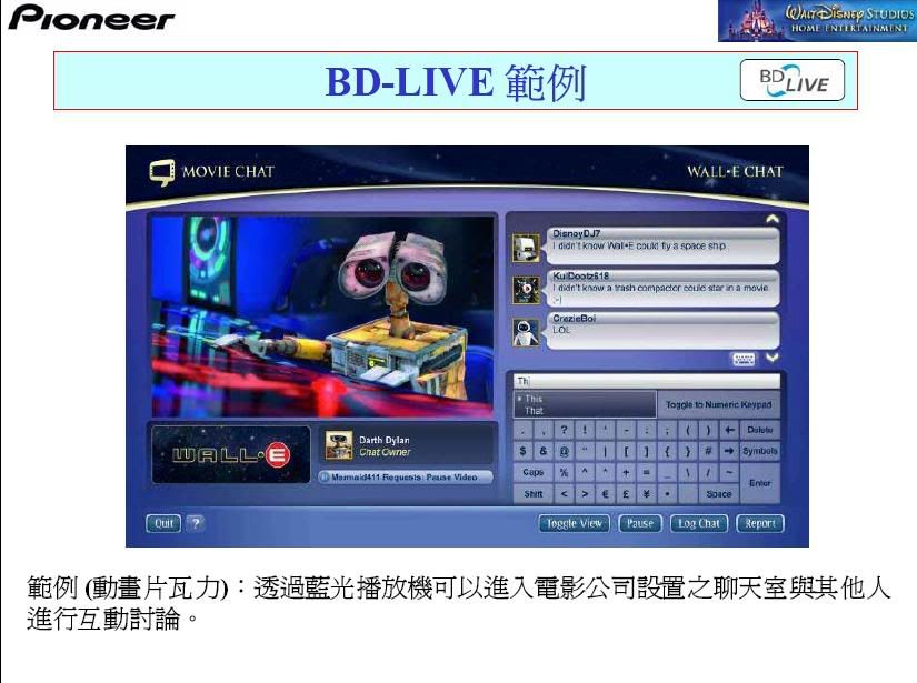 目前BD-LIVE功能由電影公司來主導其內容...PIONEER在辦公室類也測試過很多次~發現....1. DL時間不一... 甚至有時可以,有時不行... (可能與電影公司之伺服設備有關???)2. 內容目前僅以英文為主...3. 內容部份... BD協定下的內容應是可以多元的... 但是,目前電影公司所提供的服務仍很有限...下面是實測後,幾個BD-LIVE的服務範例