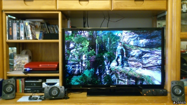 寬螢的32" 因比例壓扁之故, 視感的確感覺小了許多較傳統電視~若非為空間放不下之故, 也非是貼近看的電腦顯示需求的話!建議請上看40"機種會比較延長可能後悔的時間阿! 真的!!因為, 之前不久有切身之...感阿!看字也許無感~ 看看圖片兒便可更加知曉阿, 與君分享下...主要只為了在小房玩P3, 覺得敗入32" CX520便粉OK了, 能省當省嘛~ 但粉快便覺得太小巧有餘,而場面感實在不足~ 還好又逢黃屋來會招&還有房間要更新舊機...這次, 就沒有懸念的塞滿了(40"HX75A)! pong wrote:昨天去燦坤的購物節看...(恕刪)