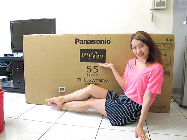 賈桂琳第一次看到這麼大尺寸的電視~55吋!