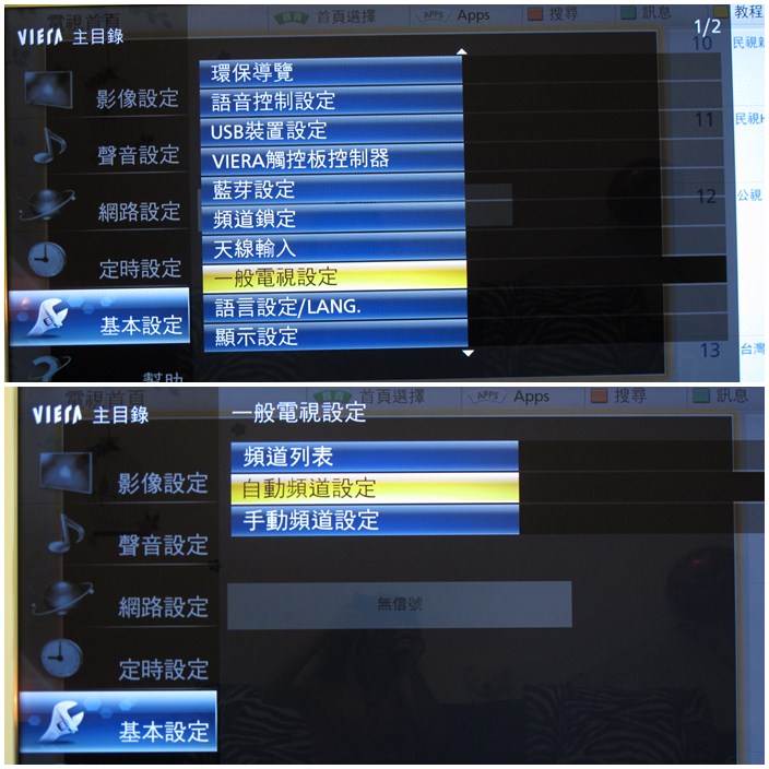 先按遙控器的目錄>>基本設定>>一般電視設定