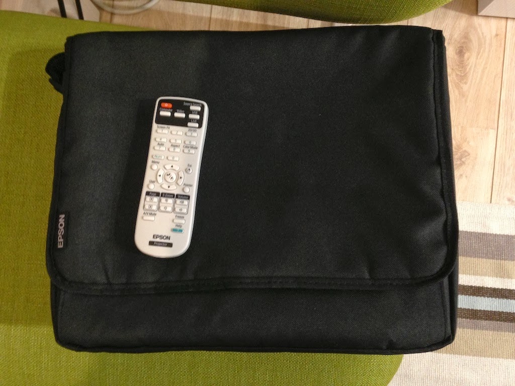 再來清點一下 EH-TW550 投影機的其他配件,遙控器和收納包。遙控器的按鍵是中規中矩的設計,對劇院來說,遙控器在初始化設定完成後,就差不多可以收起來放了。