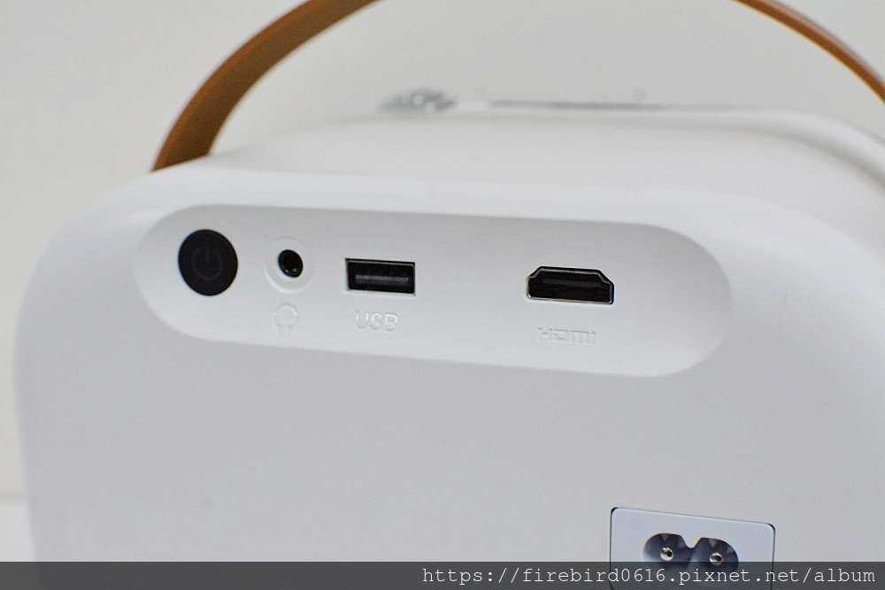 8字形的電源孔在下方,上排依序是電源開關/耳機輸出(可外接喇叭)/ USB (可接隨身碟/鍵盤/滑鼠等儲存或操控裝置)/ HDMI輸入(外接視訊播放設備)。