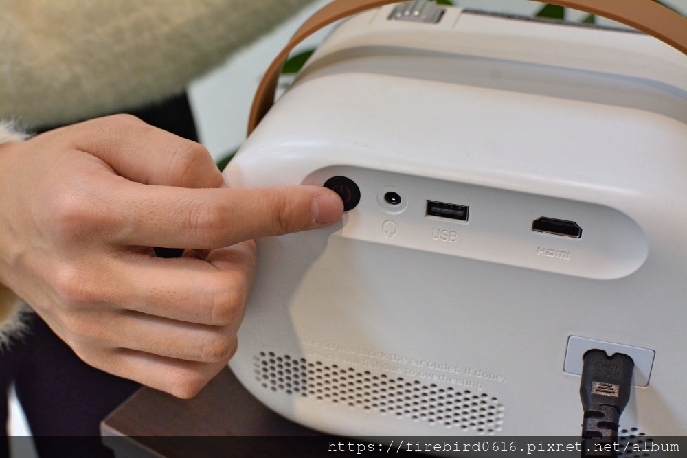 接上電源線,按下開關,等待10秒左右開機,就可以準備享受劇院的大畫面效果。