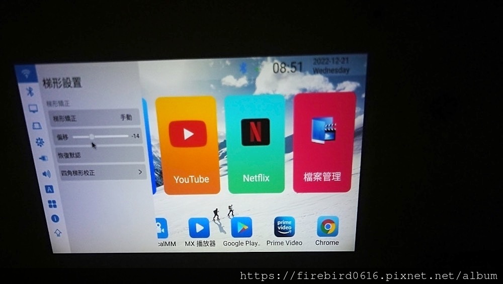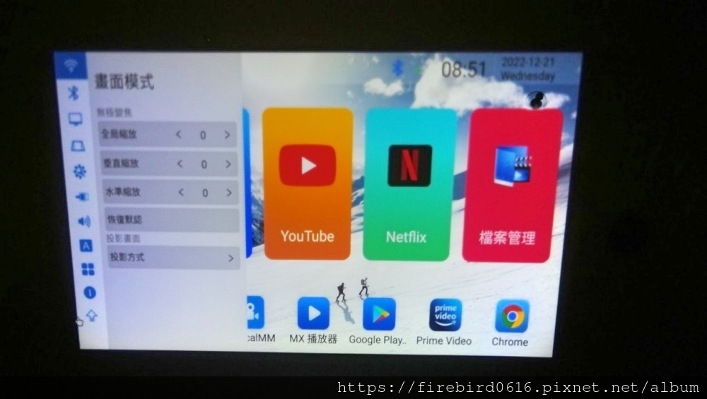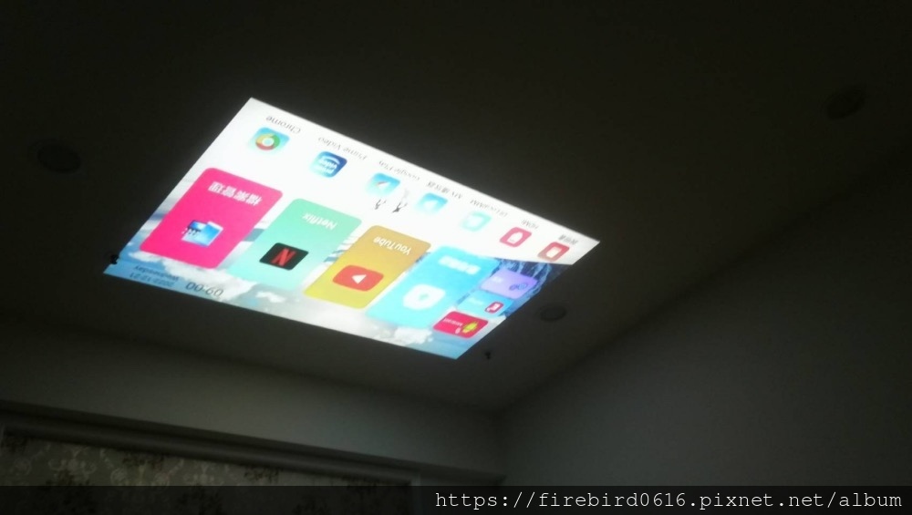 這樣的投射位置頂部大概在枕頭下方位置,躺著的時候眼睛要微向下看,是非常傭懶舒服的感覺,不過畫面還是有點而大就是了。
