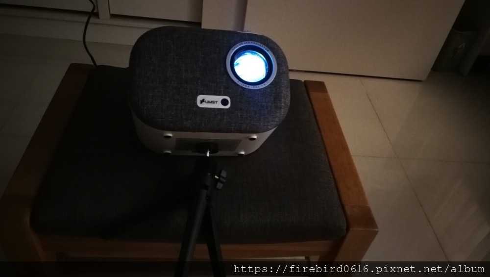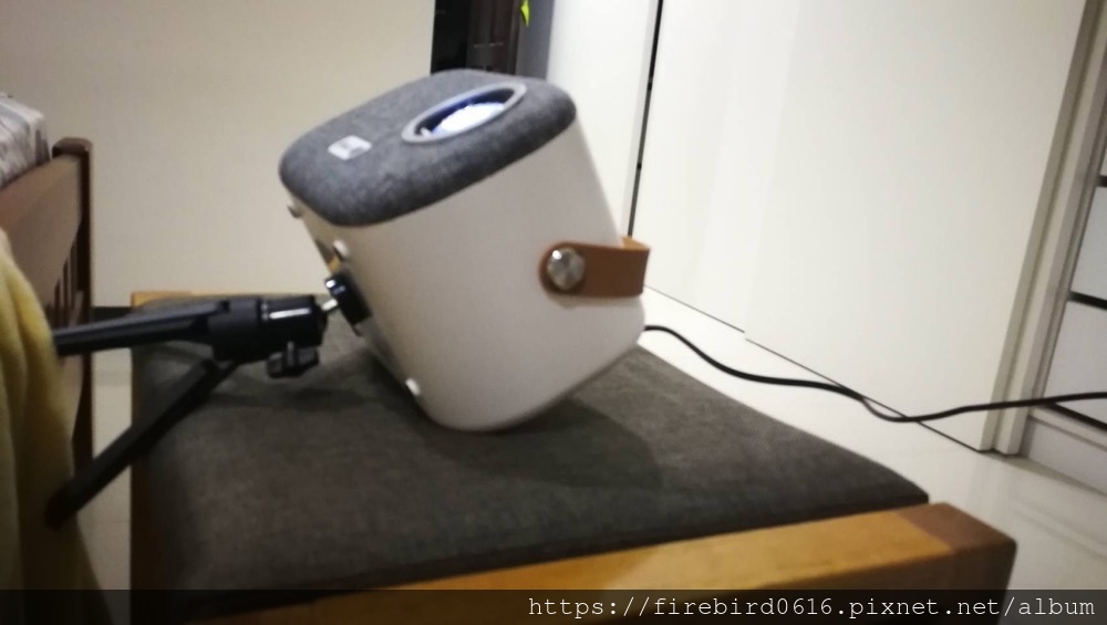 我房間天花板大概是離地大概2.8米,床是標準6尺床,發現最好的位置是沿著床腳放張椅子,讓UMST Q1靠腳架支撐著的斜躺角度。