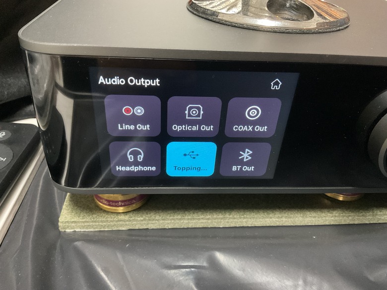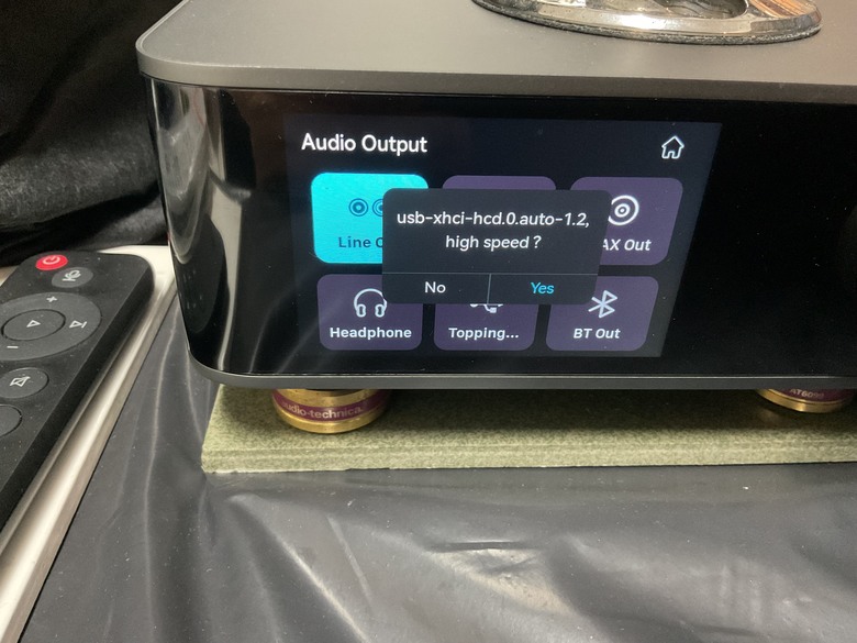 玻璃觸控螢幕上顯示的USB輸入/輸出,上次已經實裝,因為我沒把TOPPING E30電源打開,要開啟,螢幕才會亮起,我以為還沒實裝,囧!