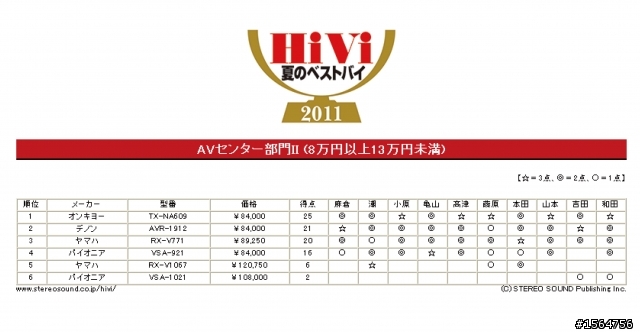大大可以參考一下日本2011夏季BEST BUY 擴大機的評比...