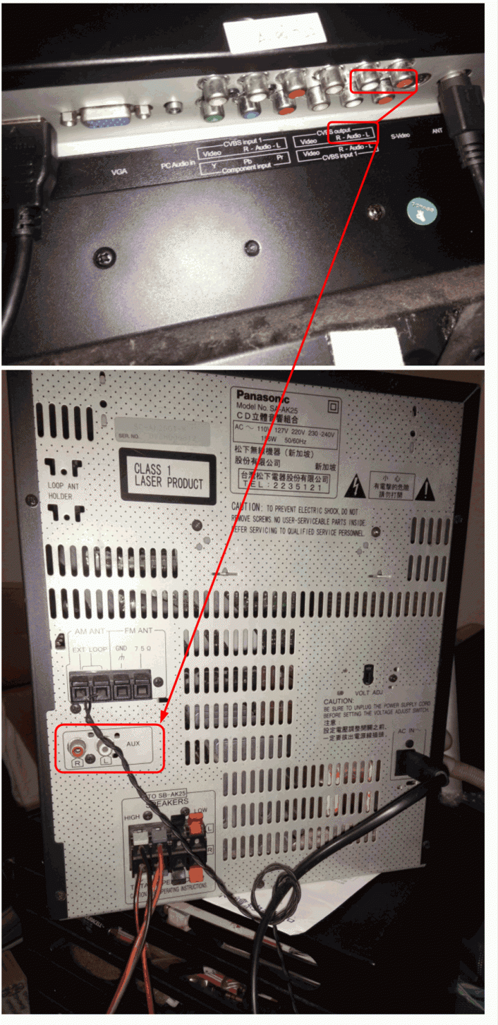 小弟也有相同問題,我也學版大把紅白插入音響,AUX 那端插入機上盒,但只出現很大聲的電磁波聲音⋯這是那裡出問題呢?