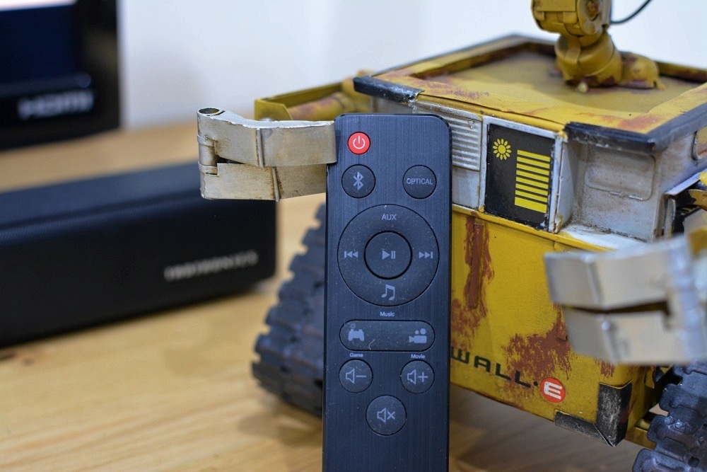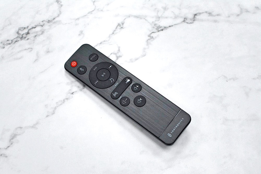 Taotronics TT-SK023的遙控器,採用髮絲紋面版,作工精細,十分有設計感。