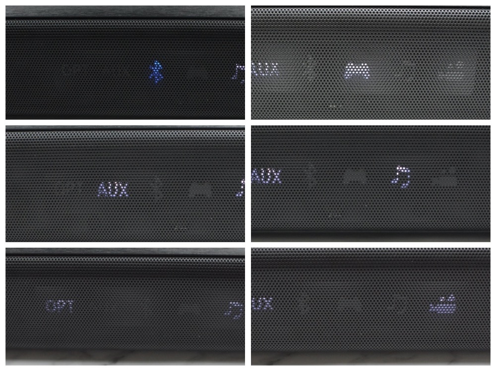 三種訊源:藍牙/立體聲/光纖 (左上至左下)