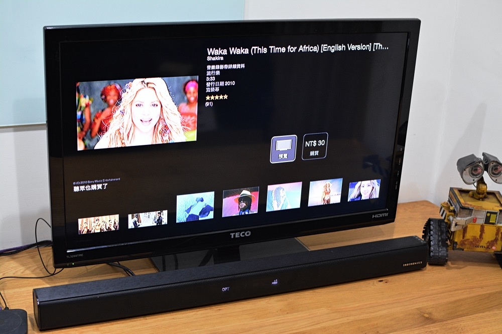 搭配舊款的APPLE TV,以光纖音源輸出。