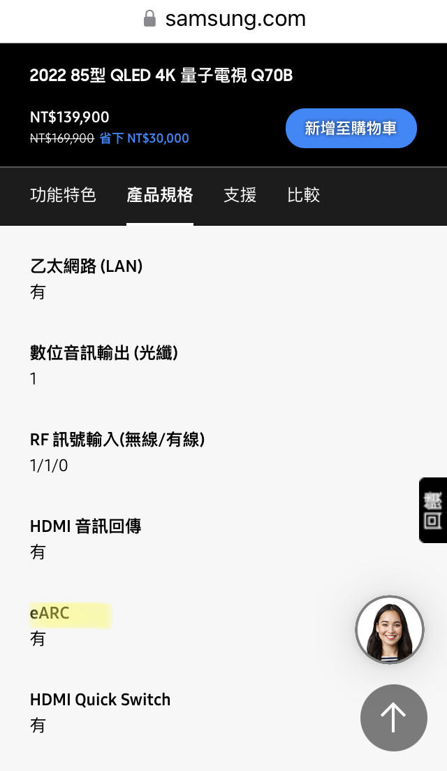 電視為85Q70B無支援atmos