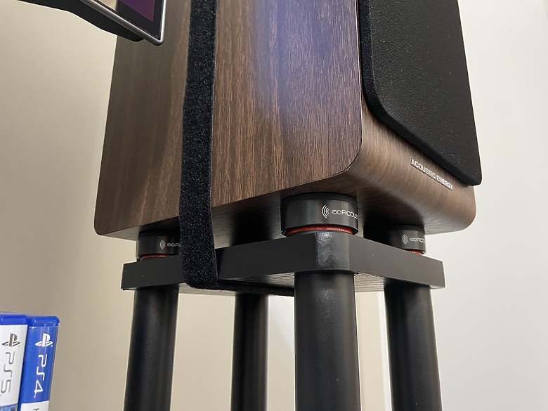 3.也因為上不了iso orea的緣故,iso-puck mini並無法有力的吸住喇叭,所以加上綁帶固定來避免地震摔叭的機率