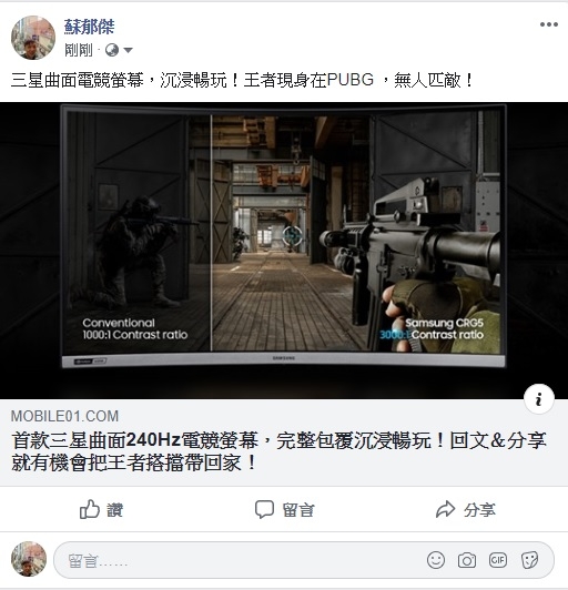 三星曲面電競螢幕,沉浸暢玩!王者現身在PUBG ,無人匹敵!