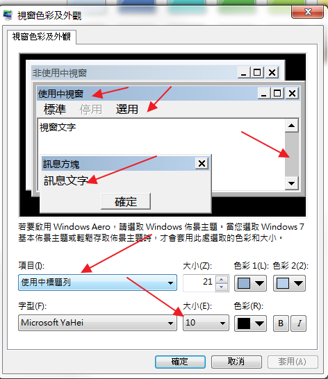 可以單獨調每個項目的大小啊,不一定要調 DPI 那個1080P 的,適合遠距離觀看視窗標題、選單、文字,可以調 18~22捲軸調 23有一個比較容易忽略的項目「圖示」「圖示」就是桌面捷徑下面的字,還有檔案總管中,檔案名稱那個字,調 26以上數值,或者更大,反正就試,調完套用立即生效(不用重開機,立即生效),覺得不夠大再加